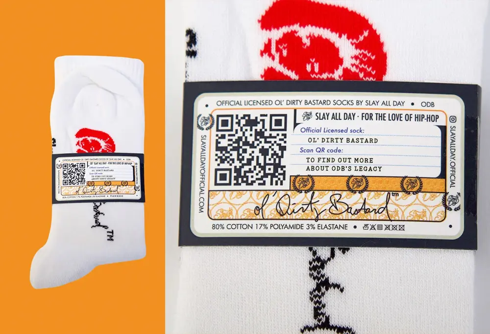 OOOOH BABY, J'ADORE RAAAAAWW ! Célébrez l'héritage d'Ol' Dirty Bastard avec ces chaussettes sous licence officielle. Fabriquées avec des matériaux haut de gamme et un design audacieux, ces chaussettes apportent l'énergie et le style d'une véritable légende du hip-hop à votre look quotidien. Ornées de la broderie emblématique ODB, elles sont conçues pour le confort et la durabilité, parfaites pour les fans inconditionnels ou pour tous ceux qui souhaitent ajouter une touche unique de l'héritage hip-hop à leur garde-robe.