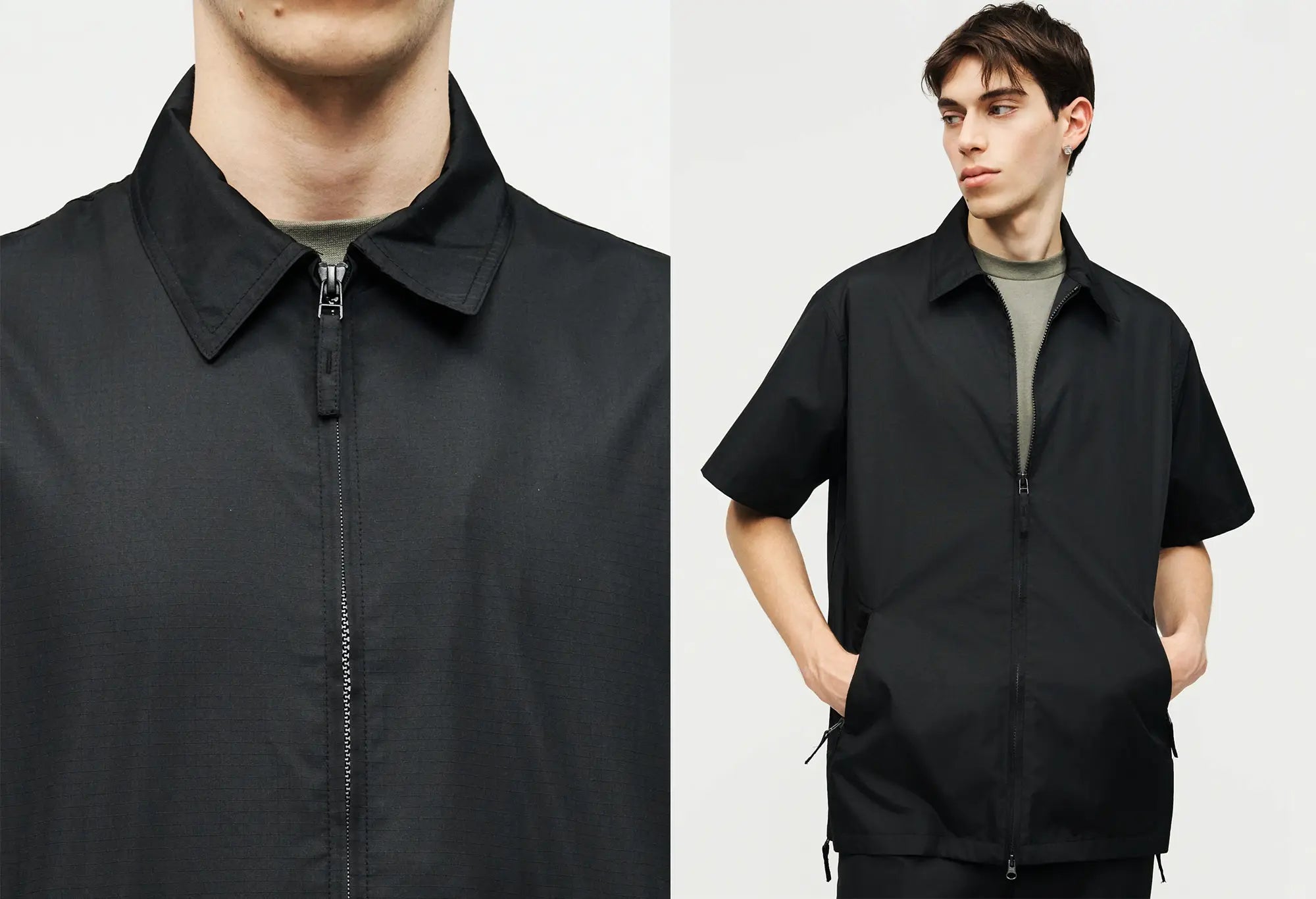 Une chemise militaire à manches courtes sans duvet, ornée de fermetures éclair originales qui lui confèrent une forte présence.